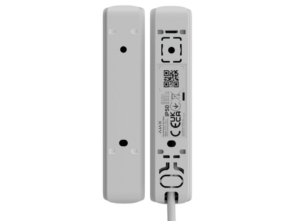 Ajax DoorProtect G3 Fibra to przewodowy czujnik otwarcia, wstrząsu i przechyłu. Obsługuje podłączenie przewodowego czujnika innej firmy z normalnie zamkniętym (NC) typem styku. Urządzenie jest przeznaczone wyłącznie do użytku wewnątrz pomieszczeń.