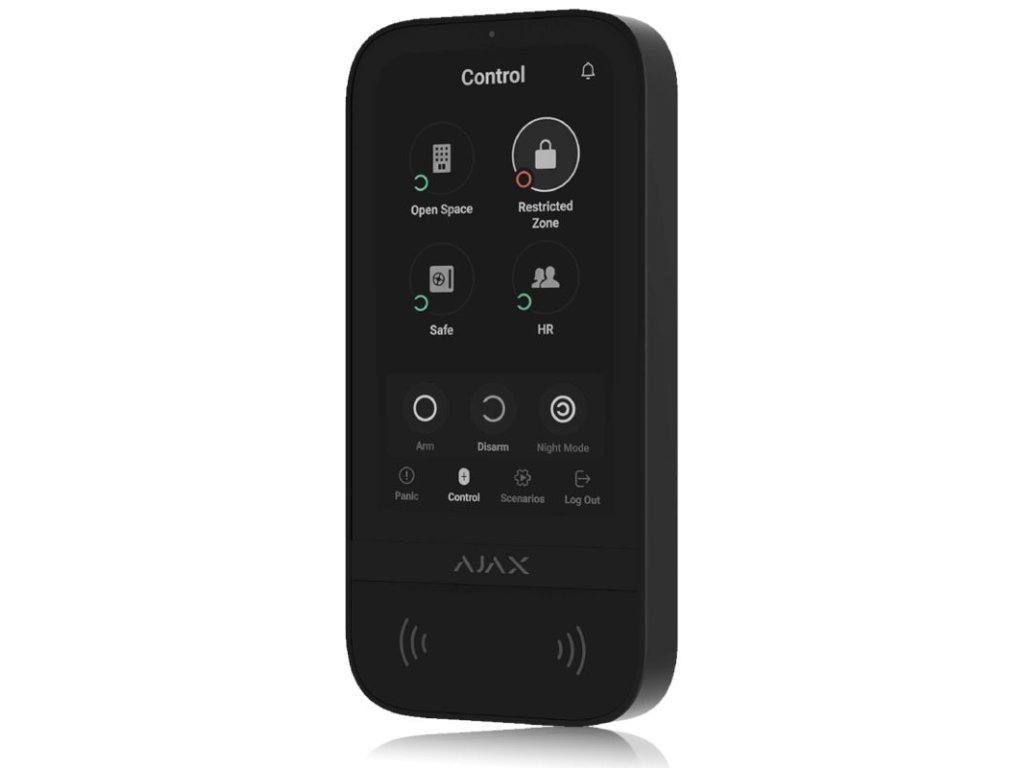 KeyPad TouchScreen Fibra to coś więcej niż klawiatura – działa jako centralna jednostka sterująca systemu Ajax. Oferuje kontrolę dostępu za pomocą kodu, breloków, RFID, a także telefonu przez Bluetooth. Z ekranu głównego można sterować trybami zabezpieczeń, uruchamiać scenariusze (np. zamknięcie bramy garażowej, włączenie oświetlenia) lub sprawdzić status systemu w czasie rzeczywistym. Wszystko jest chronione przed nieautoryzowaną manipulacją.