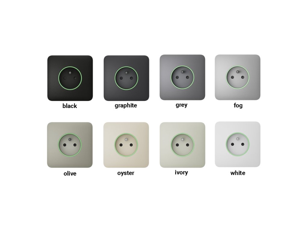 Gniazdka mogą być używane samodzielnie lub łączone z inteligentnymi włącznikami LightSwitch i instalowane w ramkach. Urządzenia mają ten sam design ramki i odcienie kolorów.