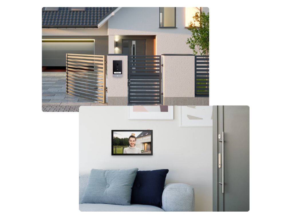 Zaprojektowany z myślą o łatwej instalacji, nawet w zabytkowych budynkach, gdzie nie było planowanego okablowania elektrycznego i sieciowego. Wideodomofon zewnętrzny jest wyposażony w dużą, wyjmowaną baterię litową, która łatwo się ładuje i obsługuje zasilanie słoneczne. Komunikuje się z monitorem wewnętrznym poprzez domową sieć Wi-Fi, eliminując potrzebę stosowania długich i uciążliwych kabli.