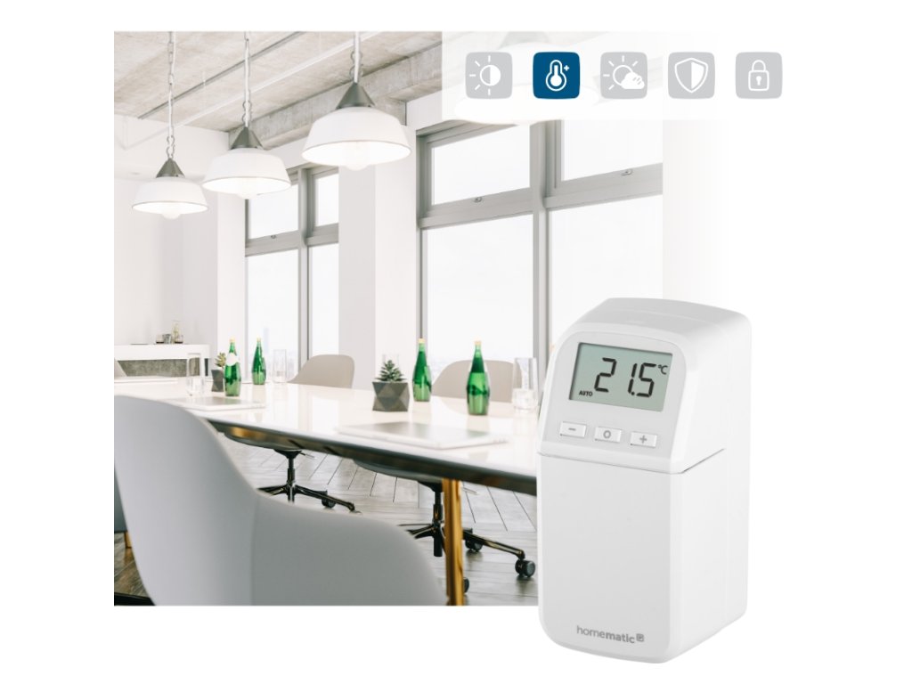 Nowoczesne rozwiązanie głowic termostatycznych Homematic IP opiera się przede wszystkim na unikalnym algorytmie i silnikowym mechanizmie sterowania. Zastępują tradycyjne głowice termostatyczne grzejników, sterują temperaturą w pomieszczeniu i procesem ogrzewania zgodnie z indywidualnymi potrzebami, co prowadzi do natychmiastowych oszczędności i redukcji wydatków na energię nawet o 33 %.