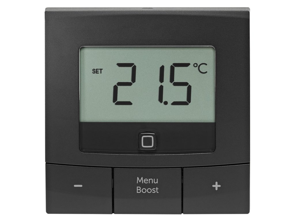 Temperaturę można precyzyjnie ustawić za pomocą przycisków w krokach co 0,5 °C. Termostat ma funkcję Boost do szybkiego ogrzania pomieszczenia.
