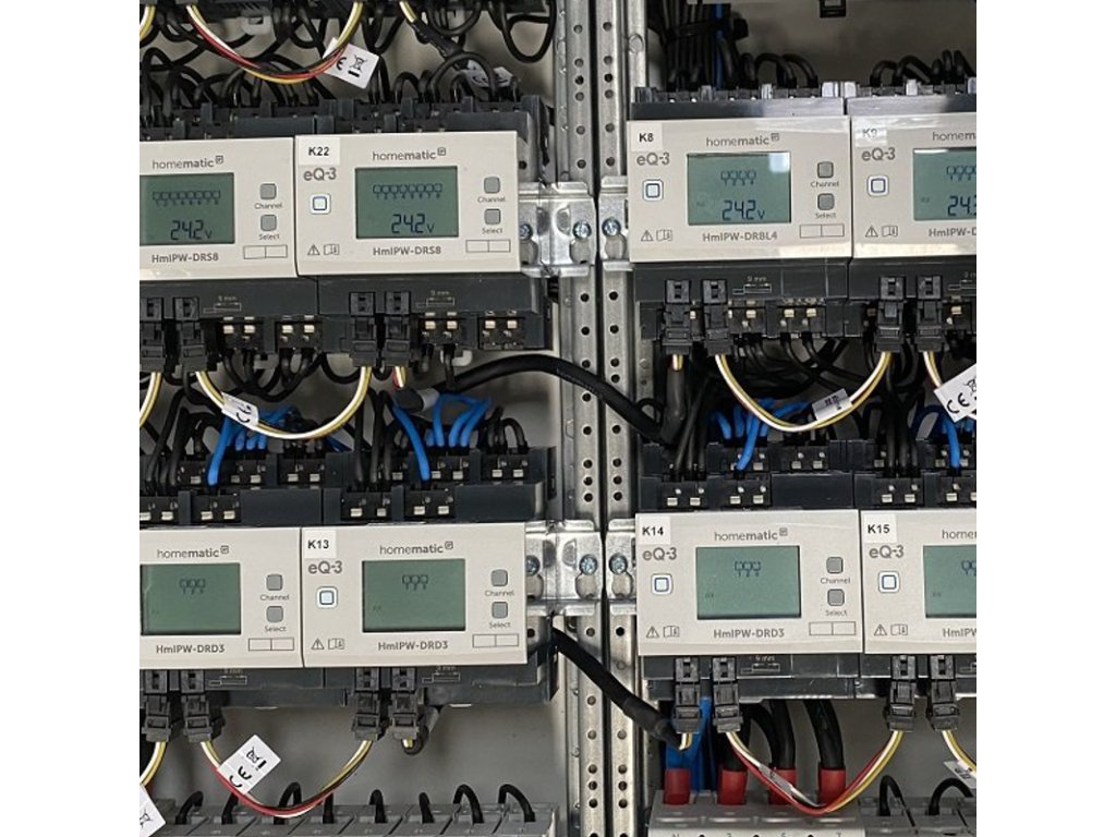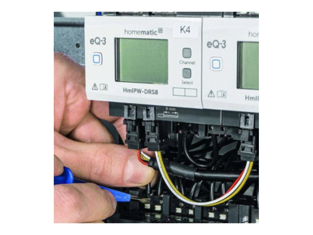 W systemie Homematic IP Wired kładzie się nacisk na urządzenia, które są głównie instalowane w głównym rozdzielaczu. Urządzenia są centralnie sterowane za pomocą przełączników, ściemniaczy i akcji członów roletowych i żaluzjowych Homematic IP Wired. Urządzenia Homematic IP Wired są połączone przewodami magistrali.