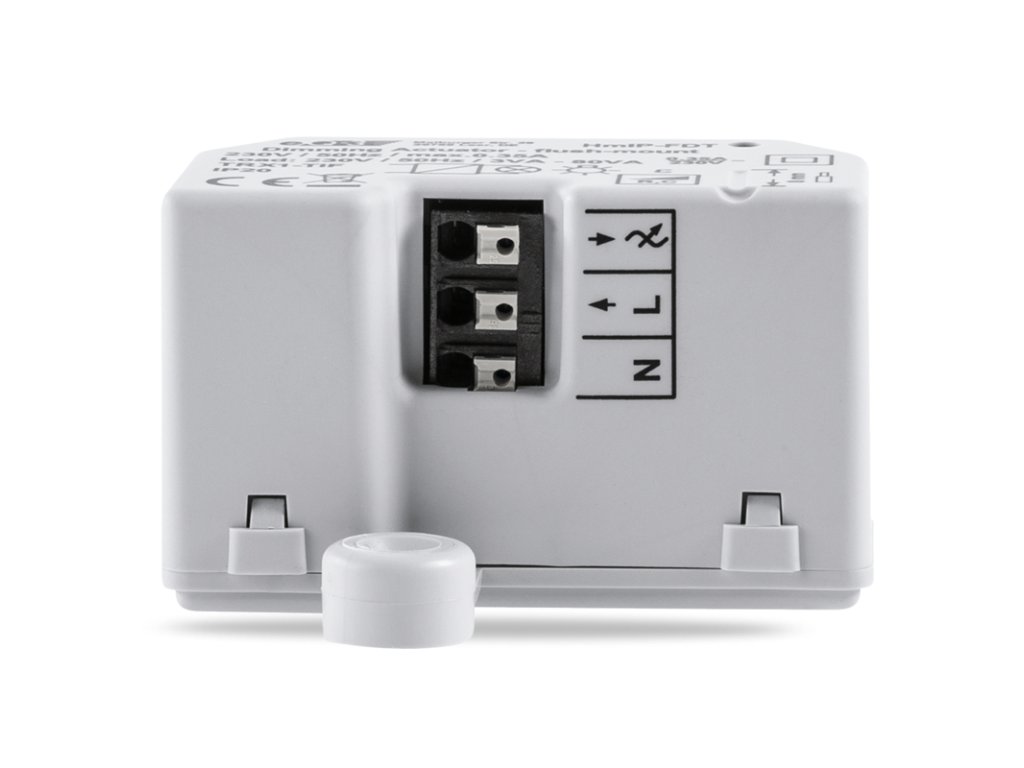 Programowalny aktywator ściemniacza do ukrytego montażu, zasilany z sieci 230 V. Urządzenie zdalnie steruje podłączonymi obwodami oświetleniowymi lub kontroluje funkcje systemu. Może włączać i regulować również inne urządzenia spełniające odpowiednie parametry techniczne.
