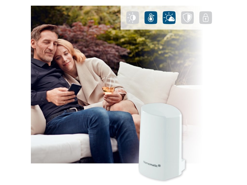 Kompaktowy czujnik z osłoną przeciwko złym warunkom pogodowym i wpływom atmosferycznym oferuje szerokie możliwości wykorzystania w połączeniu z innymi urządzeniami systemu Homematic IP. Urządzenie monitoruje temperaturę na zewnątrz i wilgotność względną. Zmierzony wynik przekazywany jest do jednostki centralnej (HmIP-HAP) oraz podłączonych urządzeń Homematic IP, które reagują zgodnie z wcześniej zdefiniowaną konfiguracją.