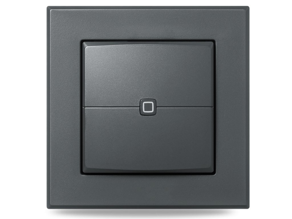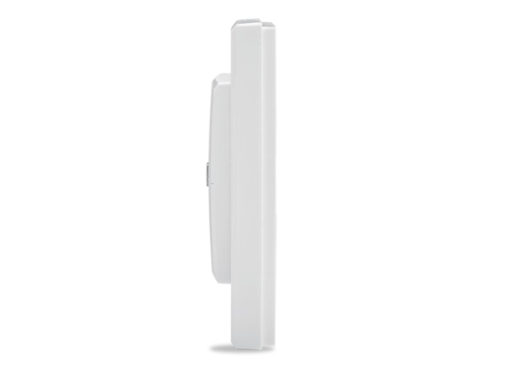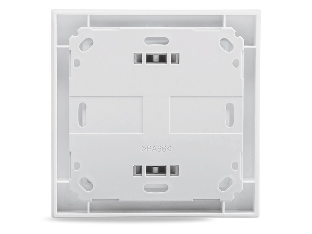 Programowalny bezprzewodowy pilot ścienny zawiera dwa przyciski do ręcznego sterowania urządzeniami lub zdalnego zarządzania funkcjami systemu. Urządzenie może sterować oświetleniem, roletami, żaluzjami, bramami garażowymi itp. Zasilanie: 2x baterie AAA.