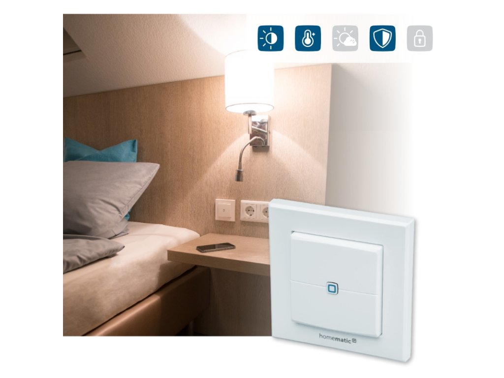 Inteligentny pilot ścienny (HmIP-WRC2) oferuje dwa kanały, które mogą rozróżnić pomiędzy krótkim i długim naciśnięciem przycisku. Pozwala to na przykład na włączanie i wyłączanie źródeł światła lub aktywowanie i dezaktywowanie trybu EKO ogrzewania.
