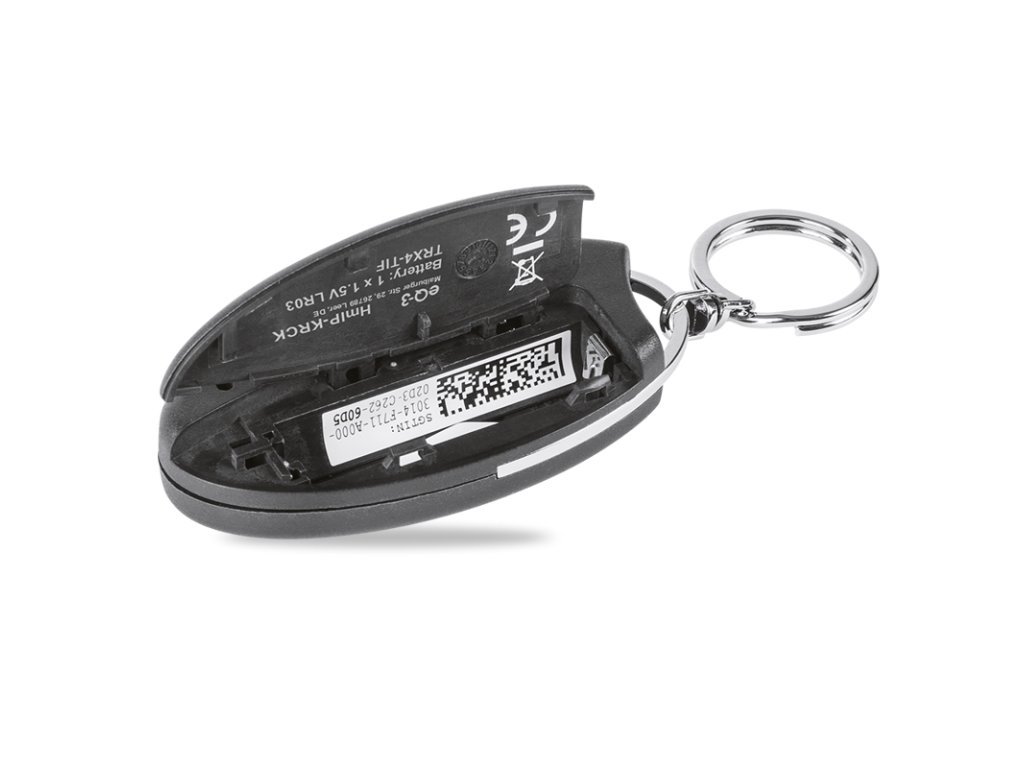 Elegancki bezprzewodowy brelok (HmIP-KRCK) z serii Homematic IP umożliwiający proste sterowanie bezprzewodowym inteligentnym napędem zamka drzwiowego (HmIP-DLD) za pomocą naciśnięcia przycisku. Jest częścią systemu inteligentnego domu Homematic IP i stanowi alternatywę dla aplikacji Homematic IP.