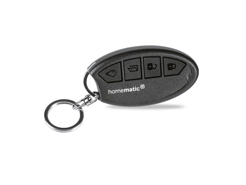 Za pomocą przycisków można indywidualnie sterować bezprzewodowym inteligentnym napędem zamka drzwiowego (HmIP-DLD) przeznaczonym do komfortowego, elektrycznie napędzanego sterowania dostępem do drzwi. Trzy przyciski breloka (HmIP-KRCK) z fabrycznie ustawionymi funkcjami umożliwiają użytkownikowi łatwe zamknięcie, odblokowanie lub otwarcie drzwi, podczas gdy czwarty przycisk jest dowolnie programowalny i może sterować innymi urządzeniami systemu inteligentnego domu Homematic IP lub aktywować wcześniej skonfigurowaną operację (np. włączenie lub wyłączenie światła).