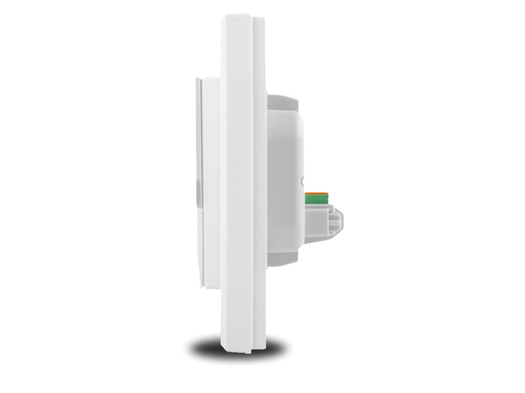Czujnik CO2 z podświetlanym wyświetlaczem LCD o przekątnej 1,74" do montażu wpuszczanego, przeznaczony do stosowania wewnętrznego. Czasowo sterowana regulacja temperatury pokojowej w połączeniu z elementami wykonawczymi ogrzewania podłogowego. Monitoruje wilgotność względną oraz stężenie CO2 w systemie automatyki i zarządzania budynkiem.
